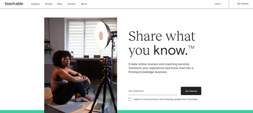 Teachable je hostovaná platforma typu vše v jednom, která vám umožní snadno vytvářet kurzy a prodávat je bez správy jakéhokoli softwaru nebo instalace aktualizací.