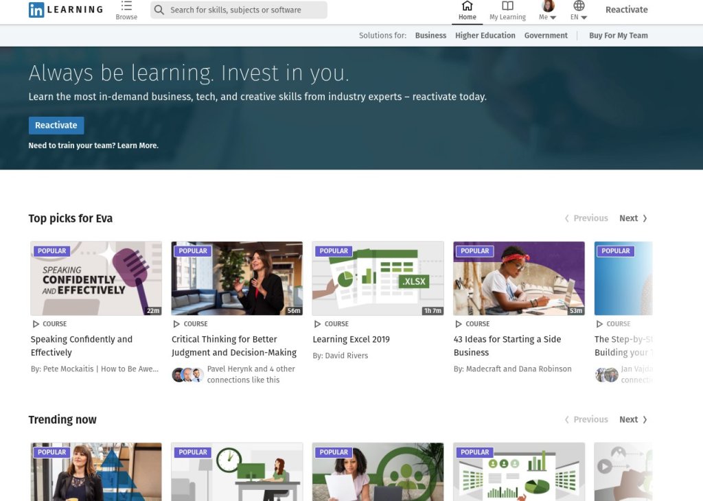 LinkedIn Learning (dříve Lynda) je populární platforma pro učení digitálních, kreativních a dalších profesionálních dovedností.