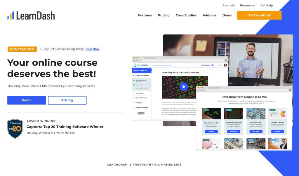 LearnDash je další populární plugin pro WordPress LMS a online tvůrce kurzů. Umožňuje vám snadno prodávat online kurzy pomocí systému WordPress.