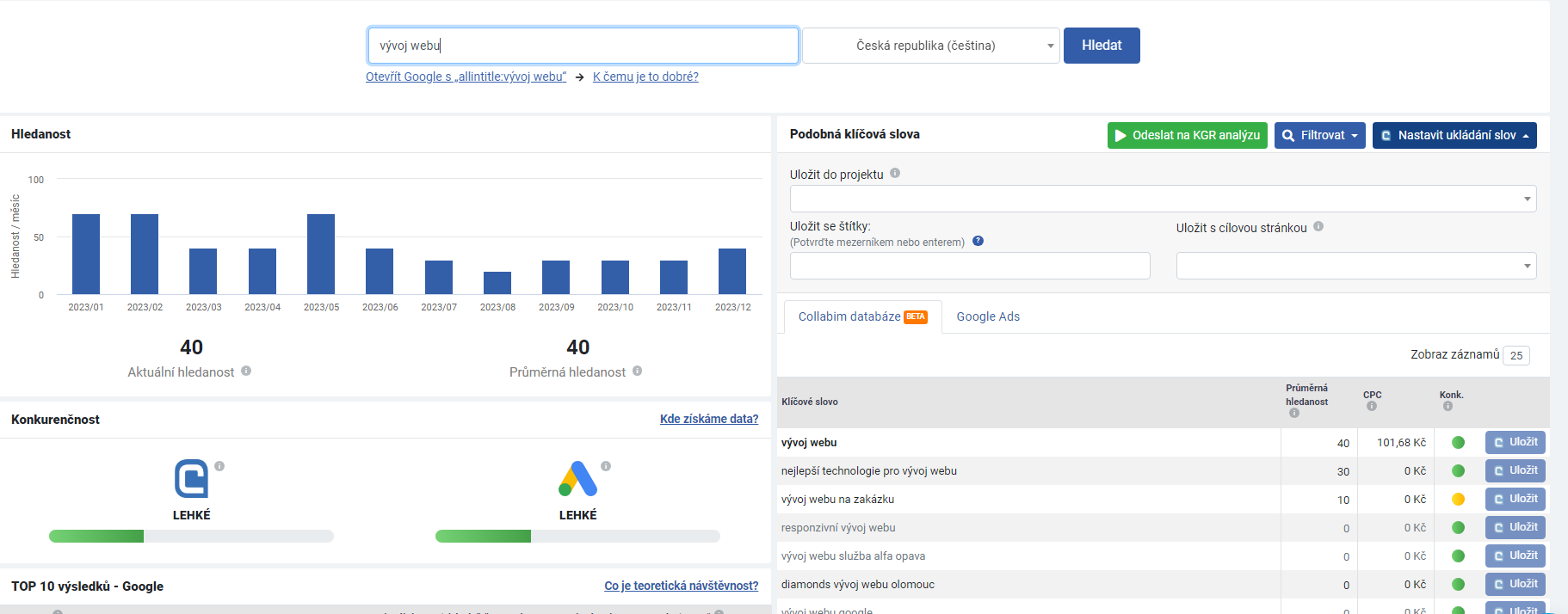 Existuje mnoho nástrojů, které Vám mohou pomoci identifikovat klíčová slova a poskytnout o nich užitečná data. Mezi populární patří Google Keyword Planner, SEMrush, Ahrefs, Moz Keyword Explorer, český Collabim a další. Tyto nástroje Vám mohou poskytnout informace o objemu vyhledávání, konkurenci, trendech a dalších metrikách, které jsou důležité pro výběr správných klíčových slov. Klíčová slova s téměř nulovou hledaností ze seznamu vyřaďte.