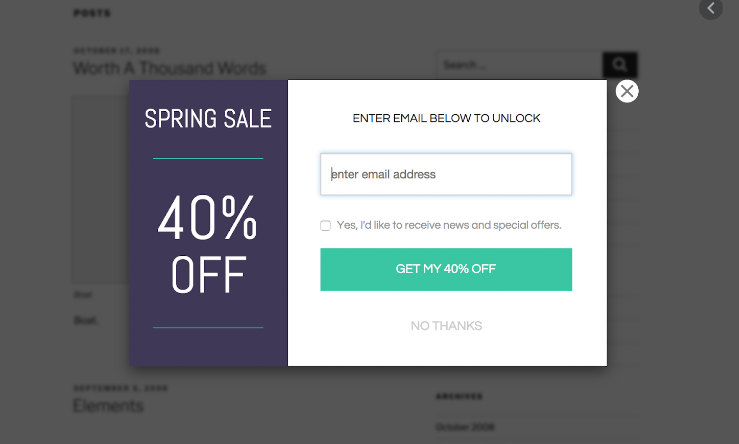 8. Vyzkoušejte různé druhy vyskakovacích oken. A použijte takový pop up, který narušuje uživatelský zážitek nejméně.