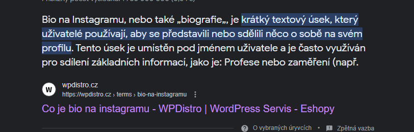 Speciální funkce: Pro některé dotazy vyhledávače zobrazují speciální funkce, jako jsou featured snippety (krátké úryvky), grafy znalostí (Knowledge Graph), odpovědi na otázky, karusely obrázků nebo videí a další.